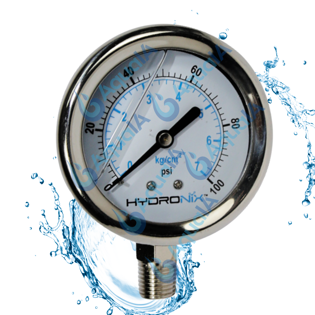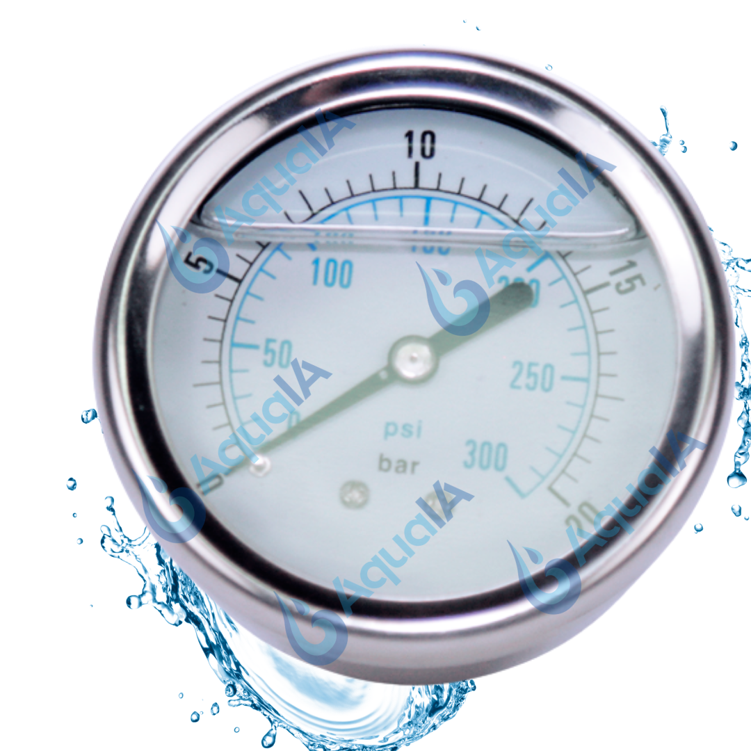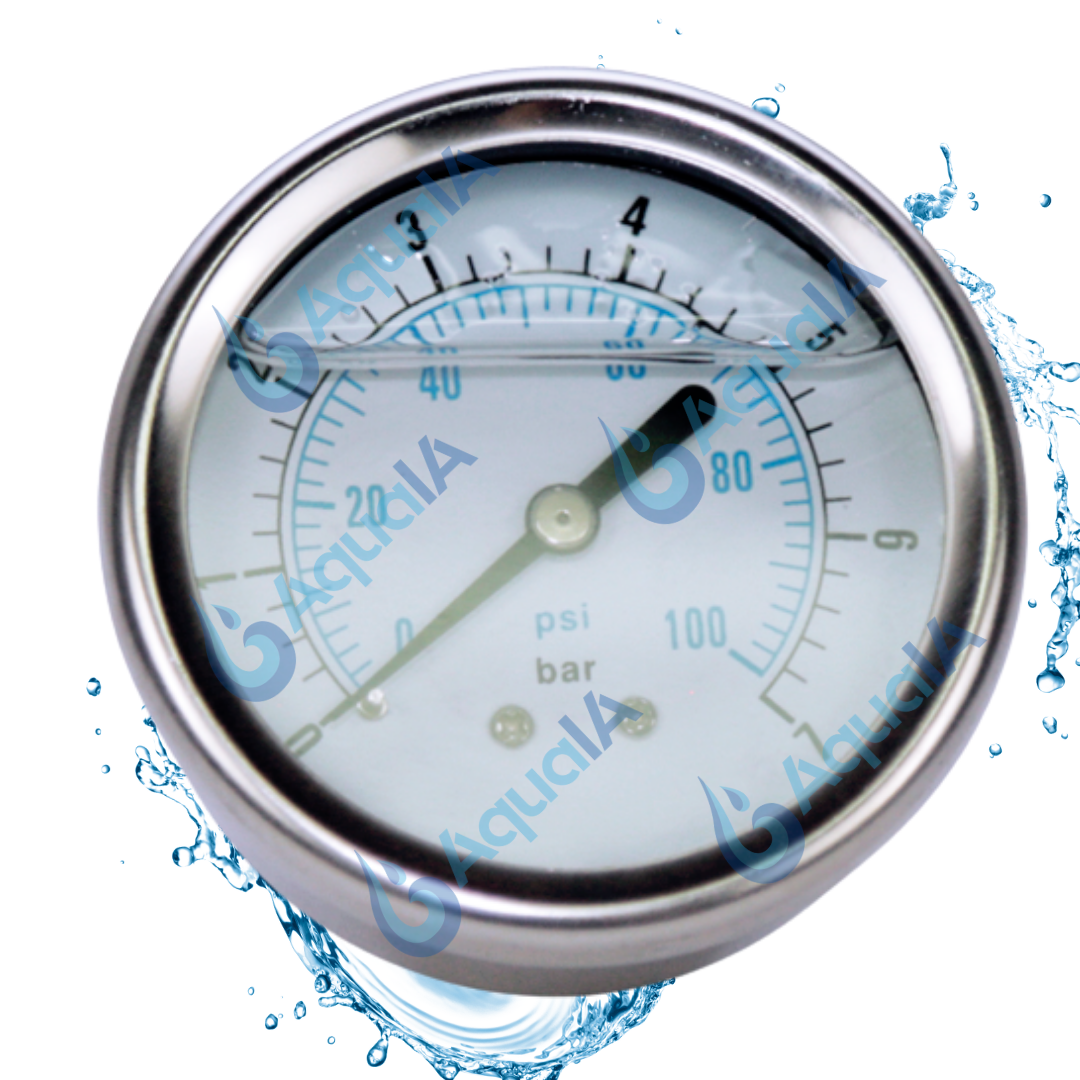 MANOMETRO 0-100PSI SS, VERTICAL, C/GLICERINA, DIAL 2.5″, CONEX. 1/4″ NPT