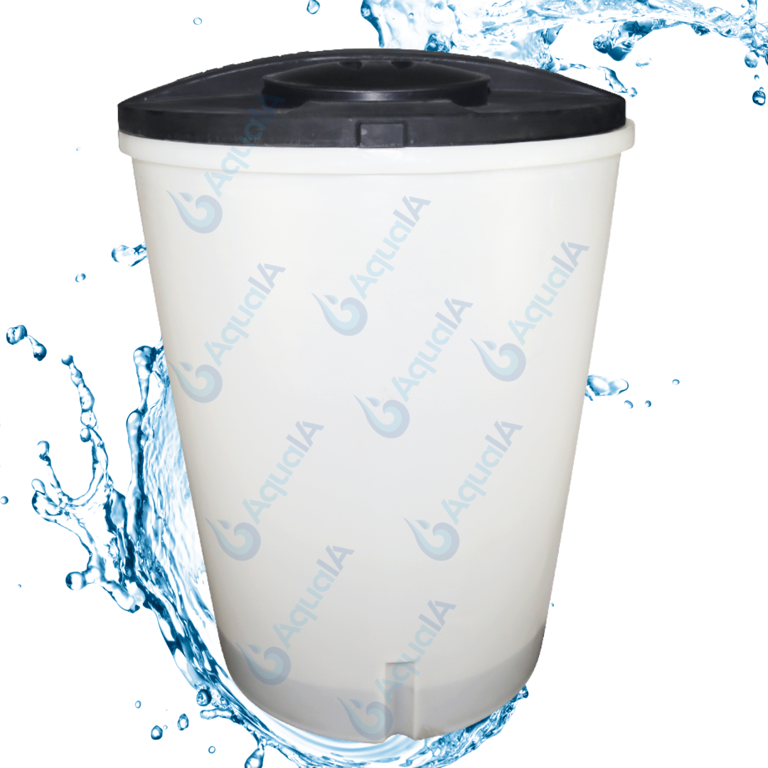 Tanque fabricado en polietileno de alta resistencia, diseñado especialmente para la preparación y almacenamiento de salmuera en sistemas de ablandadores de agua. Su diseño redondo, color blanco con tapa negra, garantiza durabilidad, resistencia a la corrosión y protección contra agentes externos.